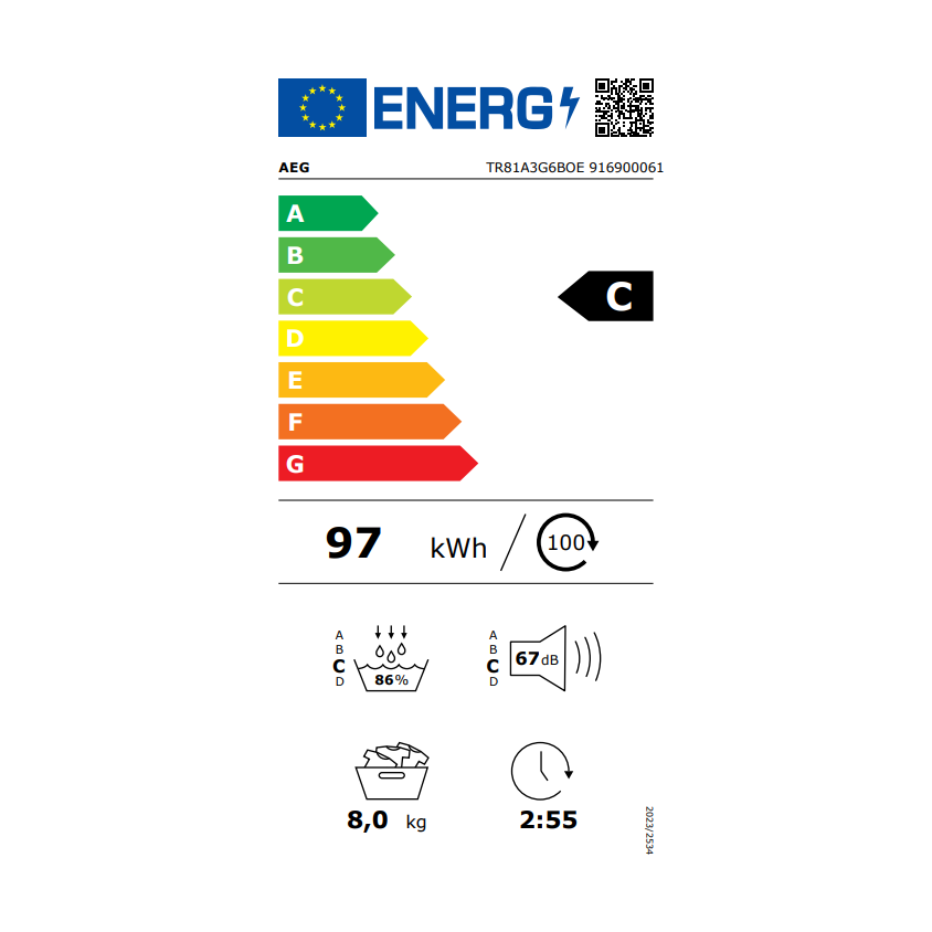 Durée de séchage du cycle coton pleine charge (mm): 175